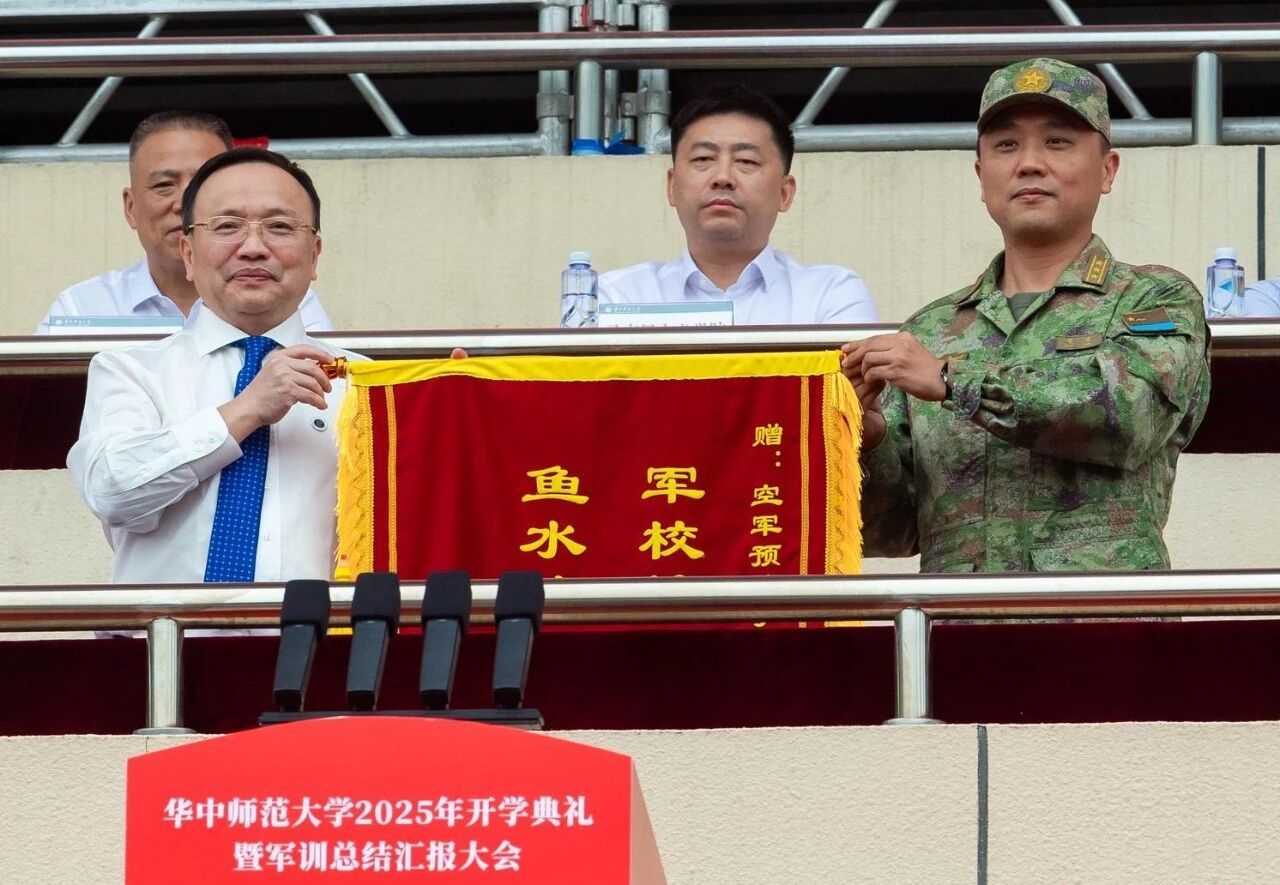 华大在线讯(通讯员 高东航 高赵梦真)9月21日,我校2025年开学典礼暨军训总结汇报大会在佑铭体育场举行。中国人民解放军空军预警学院副院长代明,三大队大队长邓刚,校党委书记夏立新,校长彭双阶,校党委副书记查道林,副校长刘宏达、刘三女牙、吴丹出席。校党委副书记陈迪明主持典礼。